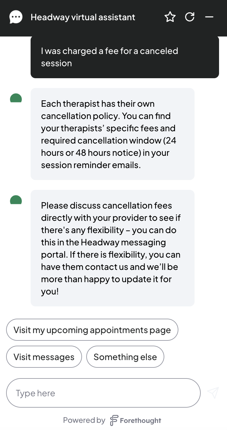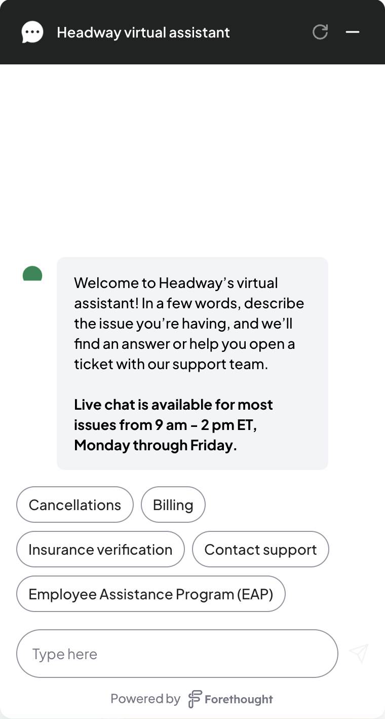 The launch of Headway’s virtual assistant unlocked Headway’s ability to launch live chat, CX’s first synchronous channel. It’s the first “line of defense” before an agent can be reached.
